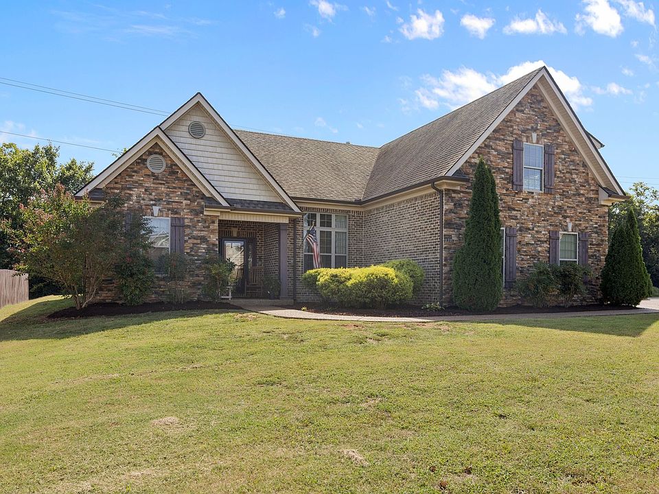 This all-brick 4-bedroom, 3-bath home in Burton Farms has been updated with new carpet, fresh paint, and a brand-new fence. The open floor plan is ideal for entertaining, featuring granite countertops, stainless steel appliances, a formal dining area, gas fireplace, hardwood floors, and a covered patio with ceiling fan. All bedrooms are on the first floor with walk-in closets, while the upstairs offers a 4th bedroom/bonus room with its own full bath and walk-in closet. A two-car garage and extended driveway provide ample parking, just minutes from Murfreesboro shopping, dining, and entertainment. "Up to a 1% lender credit with use of preferred lender The K and A group with Primis mortgage"