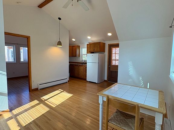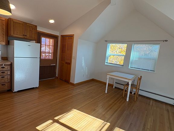 Welcome to low maintenance and low utilities! This quiet and cozy unit is located just blocks away from The Good Food Store and sits on top of a garage behind the owners main home. Upon entry you will find the kitchen to the right with a spacious living room straight ahead. There is a dedicated bedroom just past the kitchen along with a bright bathroom including vaulted ceilings and a skylight. There is a dedicated off-street parking spot next to the garage, a storage unit for tenant use, and a small porch.