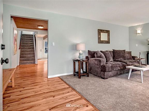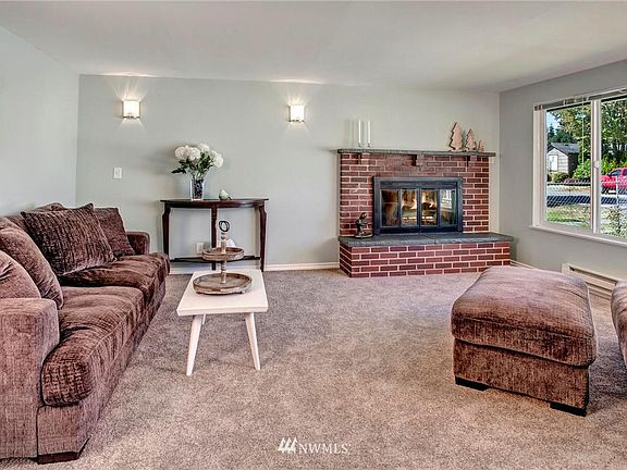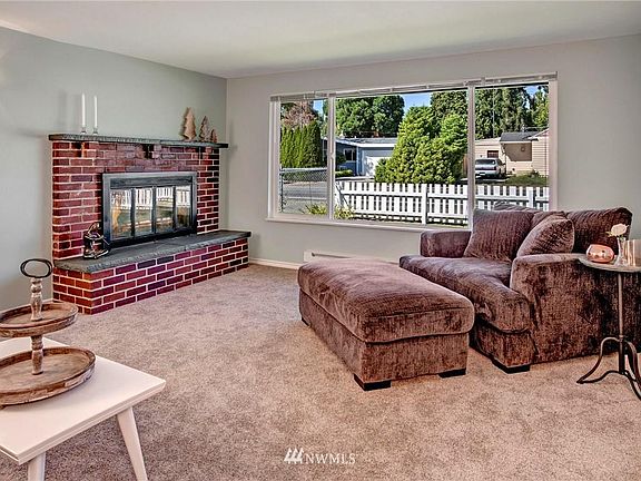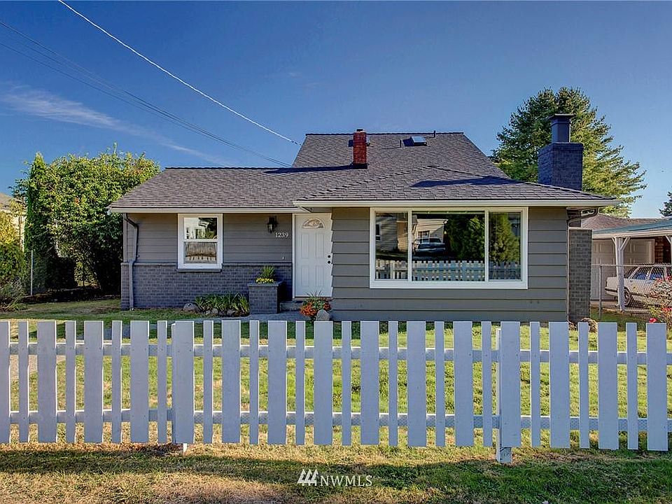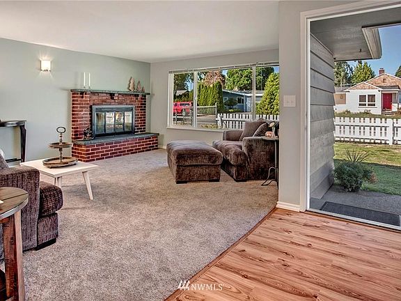 Not your typical box house, home has character & light filled rooms throughout. New roof, new carpet/vinyl, new paint inside/out. Kitchen has new stainless appliances open to dining/family room with high beamed ceiling. Light filled living room. 2 bedrooms & full bath on main. Up to private Master suite with vaulted ceiling, full bath & Mt Rainier view. Sunny level backyard with nice deck & detached garage off alley. Blocks to Olde' Burien, Seahurst waterfront park. Fully fenced, move in ready.