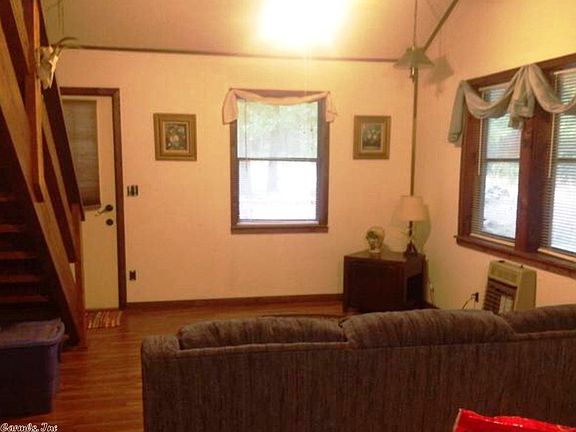 No. 01795 WOODS! WOODS! WOODS! Thinking of moving to Mt View, AR? Prefer country living? Here's your home-- 1-1/2 story, 1 bedroom down and 2 sleeping areas up, 2 bath, double car port - -private, beautiful, clean, completely remodeled on 5.7 acres on a mountain top! Features include: new roof less than a year old, mini-split, PEX plumbing, sun room, vaulted ceiling, beamed ceiling, wheel chair access, handicapped ramp from covered carport area to the back door. Located only 14 miles from Mountain View