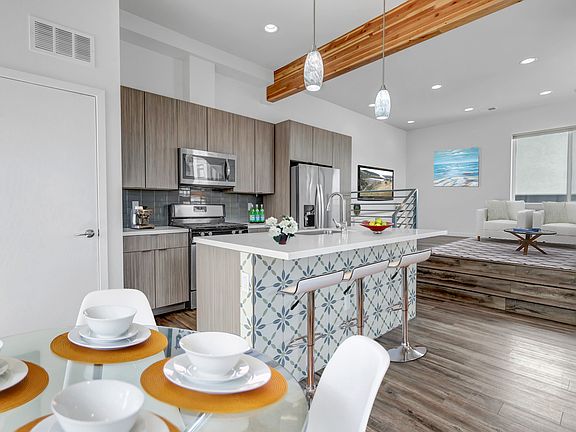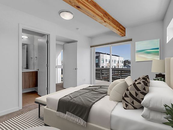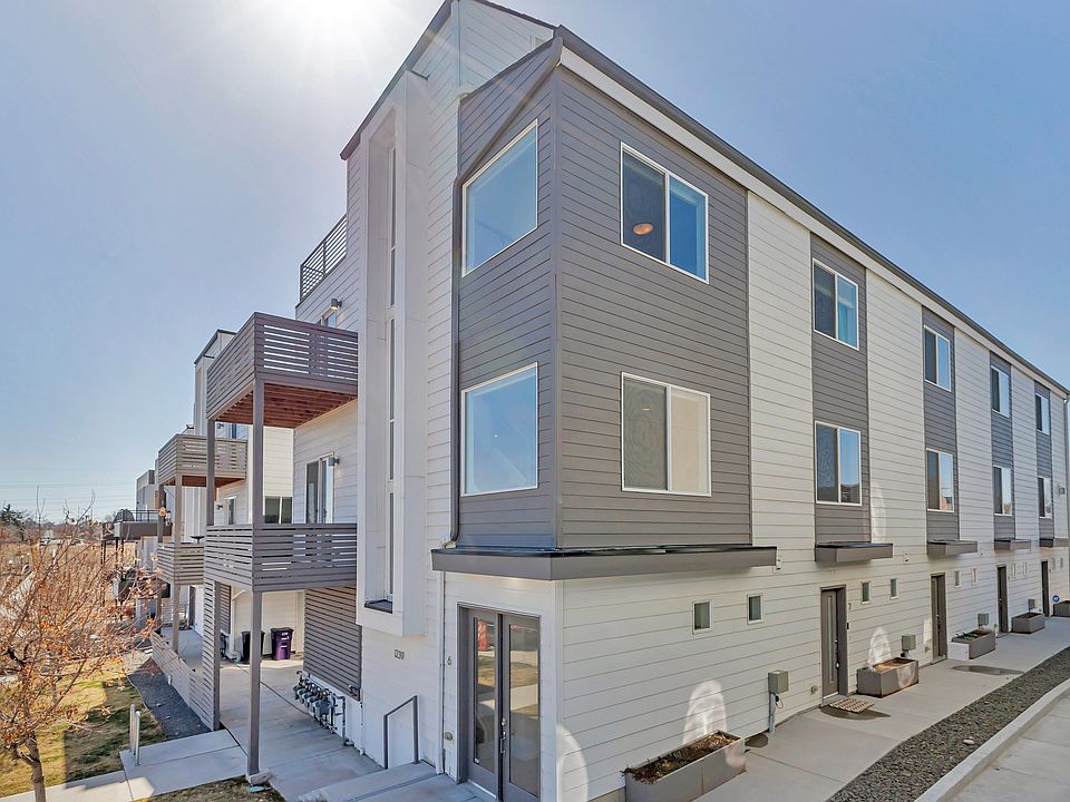 Welcome to your street-facing, contemporary townhome, a must-see! This is 2 bed / 2.5 bath end home that lives like a single family! Extensive, private outdoor space, including two balconies and a rooftop to enjoy the mountain views. Entertain in your open-plan kitchen, living, and dining room space. The great eat-in kitchen features Corian countertops and stainless steel appliances. Retreat to the third floor to relax in your primary bedroom with a full bathroom plus a walk-in closet. This level also has a second bedroom/home office with its own private full bathroom. On the main floor, you have the laundry closet with your in-unit washer and dryer. One-car garage with enough storage space for all your gear. Tankless water heater for an endless supply. Entertainment is within walking distance to Alamo Drafthouse Theater, Little Man Ice Cream, Sloan's Lake Tap and Burger, Odell Brewery, The Patio and endless options. One block to Perry Light rail station for an easy commute downtown or into the mountains. Dry Gulch Park open space is right next door and a few blocks to Sloans Lake!