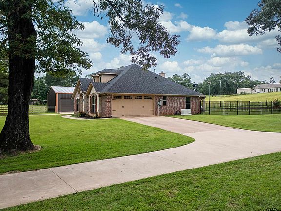 Welcome to your dream home in the country! Situated on over 2 acres, this gorgeous property features a well insulated metal outbuilding with a bay door-perfect for storage, hobbies, or workshop. The home offers 3 spacious bedrooms, 2 full baths, and a flexible space that can serve as an office. Enjoy a split floor plan with vaulted ceiling, a stone fireplace with gas starter, and a formal dining room currently used as an office. The kitchen is ideal for entertaining, featuring ample counter space, a built-in microwave and oven, gas cooktop, pantry, breakfast bar, and cozy breakfast area. Large craft/office off of the kitchen/breakfast area. The large primary suite includes double sinks, plenty of cabinet storage, double sinks, a jetted corner tub, separate shower, and walk-in closet. The secondary bedrooms are generously sized, and the second bathroom features dual sinks, abundant cabinetry, and a private tub/shower area. The oversized utility room offers plenty of storage and extra space for overflow. Step outside to a beautifully designed backyard with covered concrete patio, pergola, paved grill area, and metal fencing-perfect for relaxing or entertaining. Features include tankless water heater and generator. Don't miss this peaceful country setting and schedule a showing today!