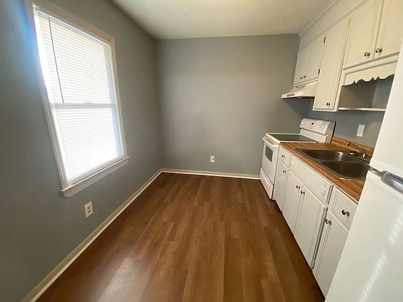 Freshly painted a warm grey. Window units. Off street parking. Water, sewer, lawn maintenance an extra $50 per month. No pets.No smoking.