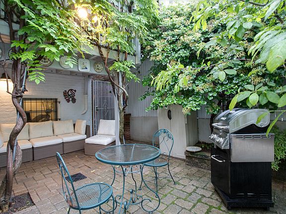- Backyard: A serene fenced patio, perfect for relaxing and chatting, features lounge chairs, a grill, and a cafe table with chairs. Get ready for evening beverages and discussing your favorite part of the day in your