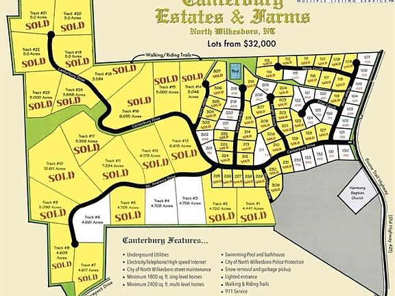 Canterbury Estates offers city amenities with a rural setting in easy to get to western Wilkes County. This lot is a beautiful setting with cleared land. The lot has city water, fiber optics internet service available, and all utilities are underground. You have access to walking trails, horse riding trails and a swimming pool making this a great area to live. It's convenient to Boone, App State, West Jefferson, the Blue Ridge Parkway and even to the larger cities like Winston Salem and Charlotte. Only minutes to local shopping, restaurants, food stores, and NC Baptist Hospital's Wilkes Medical Center. Design and build your dream home here. One drive through and you'll know why Canterbury Estates & Farms is Wilkes County's premier planned neighborhood! More lots and tracts are available.