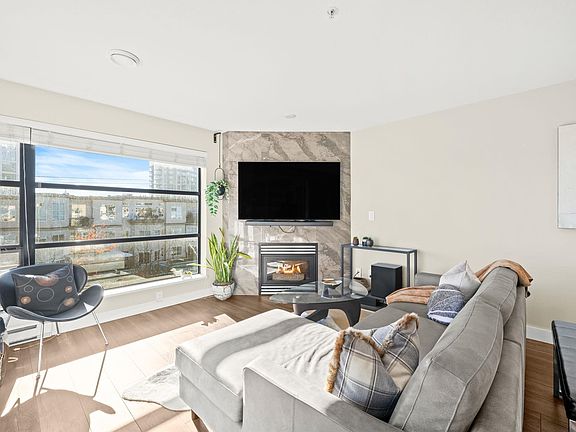 Fully renovated 2-bedroom plus den, 2-bathroom home in the heart of Lower Lonsdale. This sunny, south-facing suite is in a rain screened boutique building and filled with natural light, featuring large windows throughout. The home has been tastefully updated with modern Fischer Paykel and Bosch stainless steel appliances, an induction range, sleek quartz countertops, and wide-plank laminate flooring. Enjoy the warmth of a gas fireplace and the convenience of smart home lighting + heated floors. Step outside to your BBQ-friendly balcony and take in beautiful southern views. The primary bedroom includes a walk-in closet and a private ensuite bathroom. Located just steps from The Shipyards, restaurants, cafes, breweries. 2 pets no size restrictions.