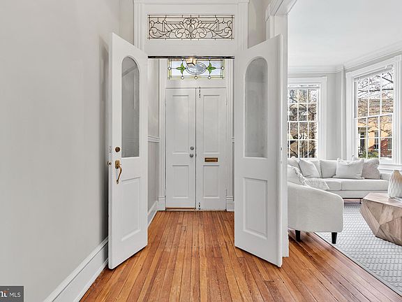 Step back in time with this beautiful, historic row home steeped in character and charm. Built in 1894 by S.H. Walker, this captivating residence is located just a stone's throw from the beloved Stanton Park in the highly coveted Capitol Hill neighborhood. Upon entering, you're greeted by a double door entry foyer that leads to a bright and airy bay front living room adorned with original hardwood floors and a wood burning fireplace. The separate formal dining room, also featuring a wood burning fireplace, provides an elegant space for entertaining. The first floor also boasts a convenient half bathroom, deep coat closet, washer/dryer, a kitchen with gas cooking and exposed brick wall, and a back mud room. Step outside to discover a picturesque, private brick walled back courtyard with brick pavers and two large mature trees. Just beyond the courtyard is off-street parking for two cars. Ascend to the second floor, where you'll find an expansive front bedroom (currently staged as a family room) with custom built-ins and a wood burning fireplace, a middle bedroom, a full bathroom, and a back bedroom with a separate play area. The third floor features a beautiful, historic skylight and offers another large bay king-sized front bedroom, linen closet, a middle bedroom, a second full bathroom, and a smaller back bedroom perfect for a home office. The lower level of the home features a fully separate one bedroom, one bathroom apartment (in-law suite) with its own front and rear entrances and full kitchen. This space includes another wood burning fireplace in the living room, ample closet space, and a washer/dryer combo unit. Conveniently located equidistant from the Eastern Market metro station (blue, orange, silver lines) and Union Station metro station (red line) / Amtrak station, this home provides easy access to transportation. Additionally, you'll enjoy proximity to great shopping, restaurants, and bars along Barracks Row. Don't miss the opportunity to make this captivating piece of history your own. Welcome home!