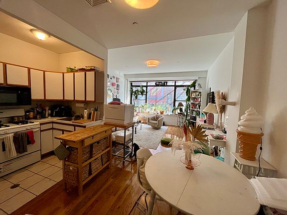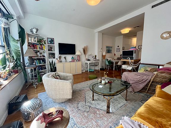 Sun drenched 1br with huge living room and great closet space! Features: -Bedroom fits queen size bed, dresser, and desk -Living room fits three seater or sectional couch, dining table, shelving, and more! -Central A/C and heat -Two huge closets plus additional storage space -Roof access -Fully equipped open kitchen -White tiled bathroom with tub -Hardwood flooring throughout -Laundry across the street -Steps away from the best cafes, restaurants, and nightlife in the city!