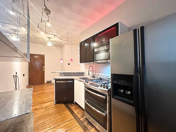 Convenient off-street parkingBright and versatile apartmentBeautiful hardwood floorsStylish track lighting