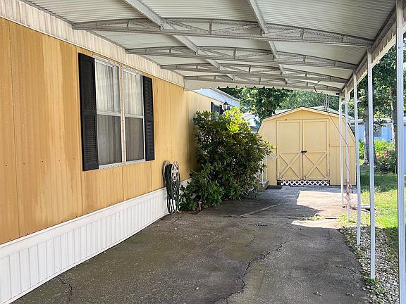 55 Plus community. 1 bedroom 1 full bath. In the past, this was a 2 bedroom unit. I would presume a wall can be put back up, easily, if need be. Super spacious. Nice yard. Shed. Enclosed patio is a bonus. Oversized carport! Alos a bonus! To be sold in "as is" condition. Seller is not capable of making additional repairs. The home, however, has a hvac that's less than 5 yrs. A recently updated rubber roof. New front steps. All appliances are included. Furniture is negotiable.