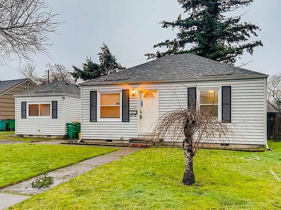 Come take a look at this 2 bedroom, 1 bathroom home in Wood Village. A well-manicured front facade welcomes you into a functional floorplan with elegant hardwood floors and an updated bathroom. Enjoy a private dining area that leads to a practical kitchen with classic wood cabinets. Both bedrooms offer exceptional natural light. Venture out to your spacious, fully-fenced backyard with a sprawling lawn and impressive trees. Just steps away from Donald Robertson Park, restaurants, and freeways.