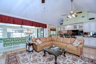 - Built-in Features, Ceiling Fan(s), Eating Space In Kitchen, High Ceilings, Kitchen/Family Room Combo, Open Floorplan, Primary Bedroom Main Floor, Solid Surface Counters, Split Bedroom, Thermostat, Walk-In Closet(s)
