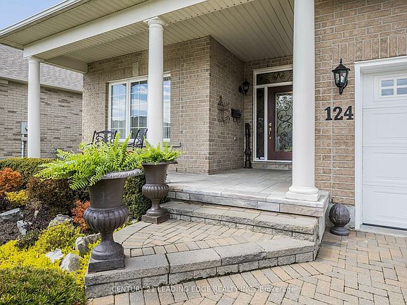 Welcome home to 124 Bobby Locke Lane, situated on a quiet street and backing onto the 16th hole of the Ballantrae Golf & Country Club. This upgraded Castle Pines model (2 bedrooms + den) offers 1855sqft of main floor enjoyment & has been meticulously maintained by the original owners. Entertain in elegant style in this open concept design that features: welcoming foyer, dramatic 11' coffered ceilings, rich dark hardwood floors, large dining room, modern kitchen with granite counters overlooking spacious living room with gas fireplace & golf course views. Primary bedroom has two walk-in closets & 5pc ensuite. Second bedroom with double closet & den/office features double French doors. Covered stone front porch with feature columns & a covered stone patio in the backyard with natural gas BBQ. Unspoiled basement for your imagination, roof 2021. This one is a must see!