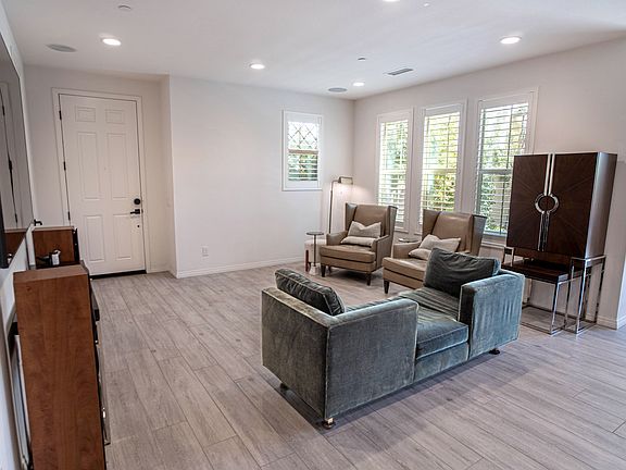 Step into this beautifully upgraded 4BD, 3BA residence offering 2,237 SQFT. of elegant living space in the sought-after community of Portola Springs. The bright, open layout welcomes you with expansive windows and stylish flooring throughout the main level. Perfect for entertaining, the living and dining areas seamlessly connect to the chef's kitchen, which features Quartz countertops with a full designer backsplash, a center island with bar seating, stainless steel appliances including a 5-burner cooktop, built-in wine cooler, and a spacious walk-in pantry. Every detail has been thoughtfully curated from plantation shutters and custom paint to recessed LED lighting, ceiling fans in each bedroom, a tankless water heater, and built-in garage storage. The luxurious primary suite with walk-in closet, and spa-like bath with dual vanities, separate makeup station, soaking tub, and oversized shower. The home also offers a main-floor bedroom with a full bath, ideal for guests or multi-generational living. Enjoy California indoor-outdoor living with a private patio perfect for gardening, relaxing, or dining al fresco. Residents of Portola Springs enjoy resort-style amenities, including sparkling pools and spas, parks, tennis and basketball courts, and playgrounds. Conveniently located near award-winning schools, shopping, dining, and entertainment, this home offers both elegance and everyday convenience