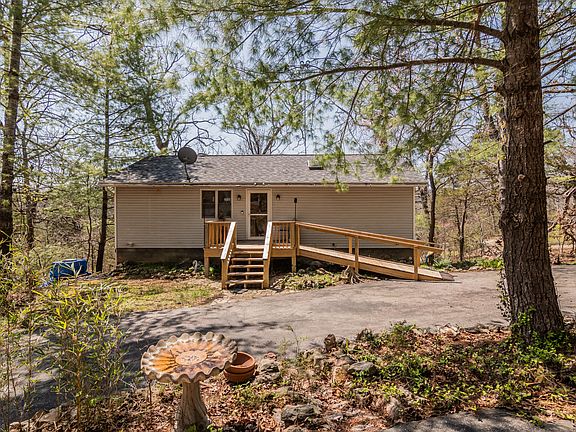 1+ ACRE -LAKEFRONT - LAKESIDE - PRIVATE GETAWAY! This 3-bedroom, 2-bathroom home is perfectly located near Point 14 of Table Rock Lake, where you can bring your kayak, fishing poles, and tanning lotion and enjoy the Lake the way you want! This home sits on more than an acre of Lakefront property and has a large Barn/Workshop where the top floor of the shop is ready for you to finish the Apartment- you can create another living space. Enter the home and you are embraced by a large eat-in kitchen that overlooks the large windows facing the water. The floor to ceiling fireplace is perfect for aesthetics as well as a cozy heat source on winter days at the lake. The main bedroom is on the entry level and the other 2 bedrooms are on the lower level, each floor has a full bathroom with the utility room conveniently located on the lower level. There is water all around, this is Lakefront, but you can access the public area just 1/3 mile around the bend on Longbend -Galena gives you numerous access points into the Lake. Half an hour from Silver Dollar City and an hour from Springfield, this diamond in the rough rests at the end of a quiet cul-de-sac surrounded by tall trees. Walk down the trail to the water or relax on the porch at the top of a wheelchair accessible ramp. In addition to the main house, an outbuilding features two stories, the bottom of which could function as a garage or a workshop. The climate-controlled second floor is ready to have a second bathroom, and a kitchenette built out- as you vision it to be. An additional storage shed and a carport for smaller utility vehicles or golf cart, completes the structures. Whether you are looking to move out to the Lake full time or need a cabin in the woods where you can put your kayaks in right from your own property, this one has it to offer you!
