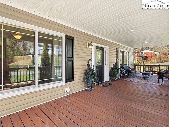 Adorable intown cottage with giant covered front porch, level entry and great access. This home is conveniently located near Appalachian State, shops, restaurants and all the amenities of Boone. As you enter the flat driveway you will be thrilled to pull directly into the spacious 2 car garage. Off the garage is the kitchen that features stainless appliances, tile floors and a granite bar. The kitchen opens up to the dining area and just off the dining area is a half bath and laundry. Also on the main floor you will find a lovely living room, primary bedroom with large closet and ensuite bath (with dual vanity, corner tub and shower). Off the living area you will head downstairs to the huge den with built in fireplace/ entertainment center. There are 2 large bedrooms and an updated bathroom as well. Off the lower level living room is a second covered porch as well and access to stairs to go to the storage areas in the crawlspace. Many recent updates to include: tankless/ on demand hot water heater, Dual Fuel Heat Pump with Natural Gas Furnace (2019), updated almost all the windows and doors in the house with Renewal by Anderson (2019-2020). Ample storage in the house between under the front porch and dual full height doors into the crawlspace.