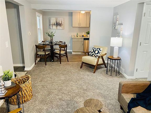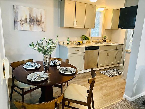 Very affordable Amherst 3 bed 1 bath 1260sqft cape cod. Sweethome schools. Low taxes. Tons of updates include New Kitchen w/stainless dishwasher & microwave. Newly remodeled bathroom with custom ceramic tile work. Formal living room & large family room w/sliding door to fully fenced yard. 1 bedroom on 1st floor, 2 beds on 2nd floor. New vinyl siding, New Furnace, New Hot Water Tank & pex plumbing, New Electric service. Fresh paint & new carpet/flooring throughout. Nothing to do here for years. Total move in condition. Offers due by 1/18 by 9pm