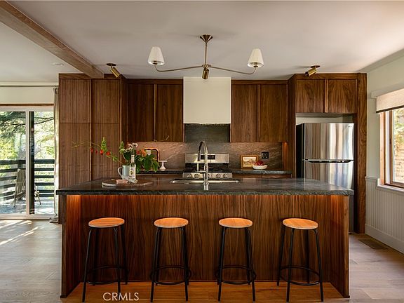 Tucked within Lake Arrowhead's coveted Lanes neighborhood—just steps from local favorite Orchard Bay Beach—this completely refreshed mountain retreat blends elevated, modern design with timeless charm. A rare and desirable level entry welcomes you into a space where modern craftsmanship shines. The custom kitchen is a true showpiece, featuring walnut cabinetry, soapstone counters, and all-new fixtures, while the entertainer’s floor plan connects open living spaces and multiple decks that invite both privacy and connection. Engineered wood flooring flows throughout, anchoring the home in warmth and style.