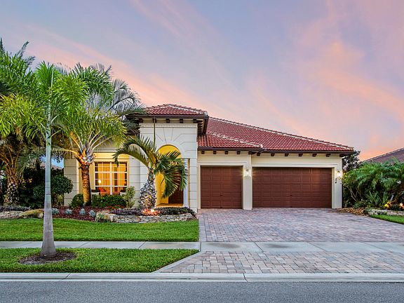 OPEN HOUSE SUNDAY, MAY 17th 1-3PM! Gorgeous Rialto home! Enjoy 4 beds, 3 baths & 3 car garage w/ new 40x20 pool & Tiki hut on an Estate Lot overlooking the lake! This is a rare combination & is ready for new owners! This highly desirable model offers a fantastic 3 way split floor plan, is bright, sunny & immaculately clean. The outdoor living area offers the FL lifestyle dream! Enjoy a heater/chiller for pool, beautiful lighting & a tiki hut big enough to seat 20 ppl! Marble pavers, lovely view of the lake & beautiful landscaping make this the perfect addition to your usable living space. Rialto is a gated community with incredible amenities, resort style pool, fitness center, multi courts & onsite management. A rated schools & access to beach, marinas, golf, 95/Turnpike & PBI