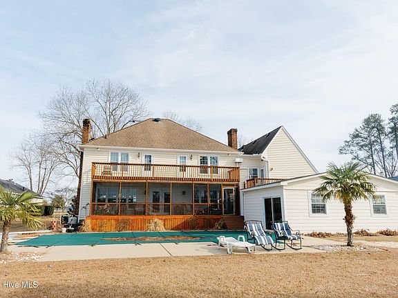 Let your dreams come true with this amazing home! Located in the exclusive Catnip Point neighborhood in historic Bath, you can live life to the fullest in this gorgeous property. This home is an Entertainers dream - begging to be shared with loved ones. A curved driveway leads to the house through the landscaped, 1 acre property. Southern charm starts early at the welcoming front porch, with chairs and a porch swing inviting you to stay. Beautiful oak floors are throughout the home, and the Great Room encompasses the length of the main area. Twin woodburning fireplaces at either end of this room face each other, and it's easy to picture them burning for your favorite gatherings - all while enjoying the gorgeous creek views. Warm wood floors and moldings give the home a cozy atmosphere. French doors open to the west-facing screened porch, a perfect place to enjoy the sunset and water views. The kitchen has custom cabinetry, along with an eat-in area with a bay window seat. An office is also on the ground floor and leads to a light filled, sunken family room. Upstairs, there are two inviting Master Bedrooms that share a full-length balcony overlooking the pool and creek. The main Master Bedroom has an enormous walk-in shower - and upgraded amenities throughout. An additional three bedrooms and laundry are upstairs. An apartment on the second floor has a private ground floor entrance. This great space includes a living room, kitchen, Master, guestroom, Cargo lift and an outdoor balcony for taking in all the water views. The 2-car garage leads to a breezeway with an outdoor shower. An additional one car garage/pool house has stunning views and patio doors to the in-ground salt water diving pool and sun deck. A whole house generator, buried propane tank and reverse osmosis system all convey. A dock and two boat lifts (13,000 lb and 8,000 lb) completes this perfect backyard setup. Beat the Spring Buyers and be ready to have year-round enjoyment in your amazing new home!