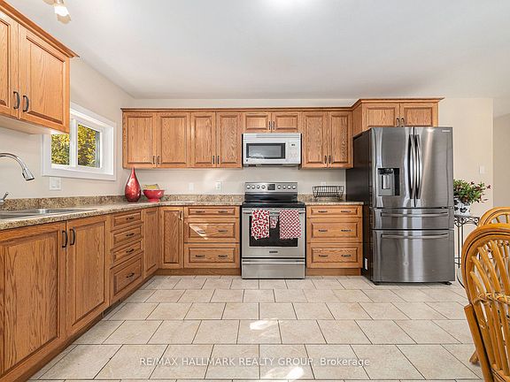 This well-maintained, custom-built bungalow is situated on a quiet, dead-end street, and offers the perfect mix of comfort, privacy, and convenience. Featuring hardwood and tile flooring throughout, the bright main level includes an open kitchen with stainless-steel appliances and plenty of counter space. The spacious living room with vaulted ceiling overlooks a beautiful private backyard with a large deck, perfect for relaxing or entertaining. The semi-finished, lower-level walkout basement provides a large rec room, offering great future finishing potential. The fully finished multi-purpose room in the basement offers flexibility for an office, playroom, or guest space. The full basement bathroom adds convenience. This home sits on a generous, private lot surrounded by mature trees, with no neighbours on one side, and is a short distance to walking trails and green space. Heated by natural gas with central air conditioning for year-round comfort, this home combines small-town tranquility with easy access to nearby shops, schools, and amenities. Come and see for yourself! Some photos are virtually staged. Offers presented Saturday, October 25th at 4:00PM - seller reserves the right to review pre-emptive offers.