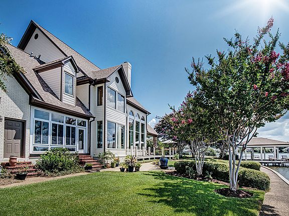 Fabulously remodeled executive waterfront home offering beautiful floor to ceiling windows for 180 degree views of Pelahatchie Bay at the Ross Barnett Reservoir(considered to be most desirable lots in Palisades because of location)! Exterior Old Chicago style brick recently installed around entryways along with a brick smear and copper awning as well as a new architectural shingle roof and a new screened in cedar porch has been added. 9, 10 and 20 ft ceilings with beautiful 9 1/2 inch wood crown moldings throughout the main living areas of the home. New wide plank wood flooring on the entire 1st level. Both formal and casual open living areas. Formal dining room and library with gas fireplace off foyer. Large open great room with gas fireplace and 20 ft ceilings. Open, large renovated gourmet kitchen has spectacular water view, center island, glass tile backsplash, granite counters, 36" Viking gas rangetop with 27,000 btu wok burner, double ovens, and deep Kohler stainless sinks. 1st level master bedroom has fabulous water views and new master bathroom with huge walk-in tiled shower with subway mosaic marble tile, dual shower heads with rainshower, freestanding soaking tub, modern Grohe fixtures, and private toilet. 2nd level gallery with amazing views across Pelahatchie Bay. Three large bedrooms upstairs with private bathrooms and large walk-in closets, including cedar closet. Two huge bonus rooms upstairs wired for surround sound, one with a balcony overlooking the water and a separate office. Three car garage with separate shop room. Black wrought iron fenced yard. Sunroom with A/C, covered rear porch with water view, and covered front porch. Tons of storage. Large covered boat dock with boat lift, 2 jet ski lifts and entertaining deck to view sunsets. Call to schedule your private showing of this fantastic home today-owner/agent