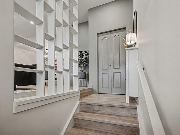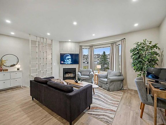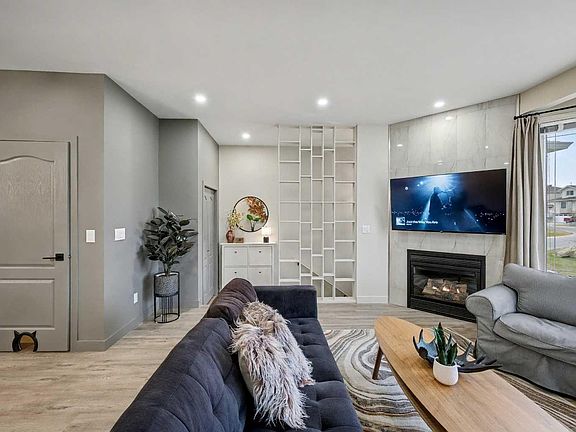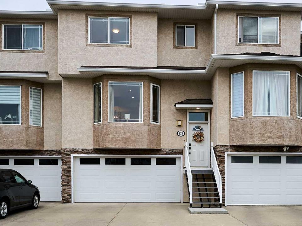Welcome to The Fairways Vistas, your new home! This recently renovated executive-style townhome offers spacious living paired with stylish comfort and smart design. As you walk in, a mid-century partition opens up to a bright main living area featuring a large bay window that fills the room with natural light and courtyard views. The corner gas fireplace adds warmth and atmosphere, especially during those fall evenings. Next to the living room, a dropped ceiling defines the open dining area, which can also serve as a perfect spot for a home office. Past the main floor powder room is a modern kitchen outfitted with stainless steel appliances, quartz countertops, and elegant oak cabinetry. The practical layout includes generous counter space, a pantry near the range, and an oversized sink with a garburator, making meal prep easy. Hosting is simple with a sizable peninsula that features a built-in microwave, eating bar, and wine fridge. The adjacent breakfast nook is designed for gatherings and gives access to a large rear deck, complete with a gas hookup for barbequing and mature trees for privacy and shade. Upstairs are two large master suites. The primary suite has a walk-through closet leading to a roomy bathroom with a soaker tub, separate shower, and a wide vanity perfect for two sinks if desired. An adjoining flexible space works well as a reading nook, yoga area, or nursery. The second suite overlooks the SE facing courtyard and comes with a walk-through closet with custom wood shelving and upgraded organizers, plus its own full bathroom! The lower level provides a versatile ground-level area accessible from the double garage—ideal for a gym, hobby room, home office or extra storage. It's prepped for a future bathroom if you want to convert it into a lower-level laundry, wine making or mudroom. This home offers more space than most brand new builds and features larger and more private grounds. Premium upgrades including luxury vinyl plank flooring throughout, fresh paint, and updated lighting. Recent updates feature a fiberglass front door, insulated garage door with tinted windows, resurfaced deck and entryway, composite steps with aluminum railing, and improved roofing and gutters. Residents enjoy modern amenities in a mature community, close to golf courses, walking paths, the airport, major traffic routes, and all kinds of shopping. Schedule a visit to discover the comfort and lifestyle this outstanding residence has to offer.