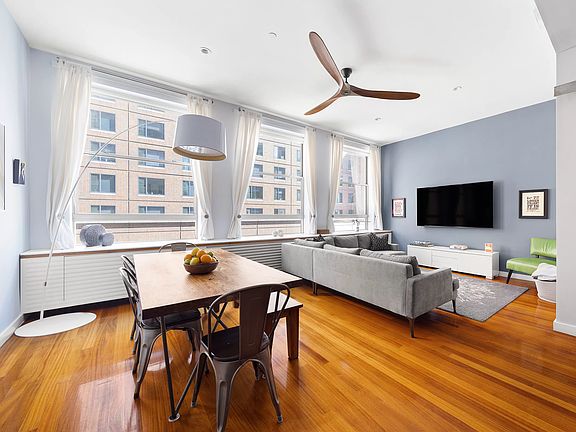 Deal Fell Through! Showings begin again at an Open House by Appointment Only on Sunday, April 24th From 1-2:30 Just steps from Union Square there is an intimate, sleek building on 13th Street called The Rose Condominium. Only three owners for seven floors and now the fourth floor is available for its first resale. As the elevator opens you enter into a beautiful and functional entryway complete with a custom-made oak and steel DiResta cantilever bench. The ceiling, an ode to Frank Loyd Wright, is of raw steel slats and yellow glass closets allow for ample storage of coats and shoes. The reclaimed oak is matched to the floor providing robust entry space flooring before transitioning to the polished hardwood that flows through the rest of the apartment. The entryway can be partly closed off by a DiResta steel sliding door. This and other elements of the home are all designed by Jimmy Diresta of HGTV. As you enter the loft you are greeted by a large open chef's kitchen with corian and glass which is designed to provide reflective light from the east facing lobby windows. Add to this plenty of counter space, a sub zero refrigerator and a hidden custom pantry. The oversized main room has massive windows, almost eleven foot ceilings, and recessed lighting. This great room is large enough for a dining area, living area, and a separate sitting area outside the kitchen to hang and talk to the chef. The separate wing of the house is for sleeping and working. As you walk down the hall you are struck by a custom designed lighted unit that marries the entryway design element with recycled oak and back lit with an orange accent. The first room off the hallway has a large window that beautifully infuses light into the room. This area is now being used as a bedroom but is also a great office, zoom room or gym. There is a fully renovated bathroom outside this room and a walk-in laundry room with your own brand new water heater. At the end of the hall are two oversized bedrooms. To the east is the secondary bedroom with south and east exposures for the sun to stream in. The primary bedroom has an outfitted walk in closet and en suite fully renovated bath. Add to this your private terrace facing a courtyard for coffee or quiet reflection at the end of the day. This home has central air throughout and is move in ready. Because there are only two other owners for the seven floor building they do not require a board application at this time. The buildings financials are strong and monthlies are low. The neighborhood just cannot be beat. The Farmers Market is in eye shot and that includes the Union Square subway hub to go anywhere in New York City. Add to this Trader Joe's, Whole Foods, and the West Side Market all within a block. Fabulous restaurants, movies galore, and shopping all right in the neighborhood. PLEASE WATCH THE RECORDED VIDEO TOUR FOR YOUR FIRST LOOK AT THIS FANTASTIC HOME.