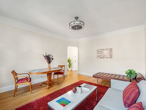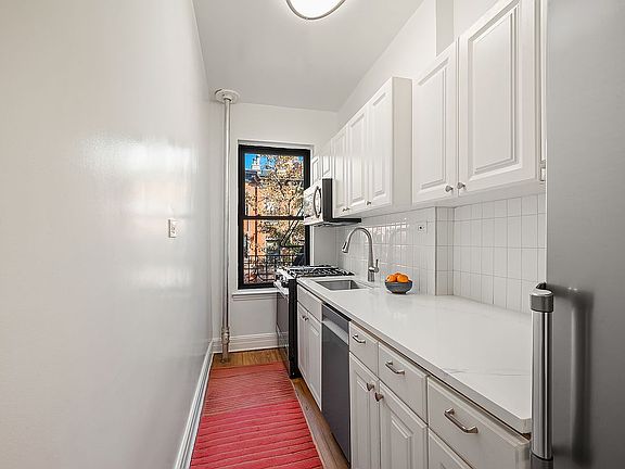 Elegant one-bedroom home nestled in the heart of Carnegie Hill. This renovated co-op apartment blends prewar charm with modern updates, just a few blocks from Central Park. Located on a handsome, tree-lined townhouse block, this apartment features a generous living and dining room with high ceilings, baseboard and picture moldings, and hardwood floors with prewar inlays. The large windows face north offering bright, tree-line views. The windowed galley kitchen has been updated with new stainless-steel appliances.