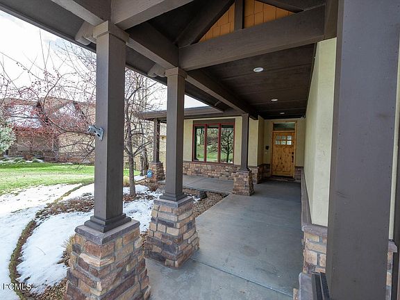 Welcome to this immaculate 5-bedroom, 3,404 sq ft home in highly sought-after Valais, offering sweeping views of the surrounding mountains, valley, and lake. Located in the desirable last phase and backing to Rare community open space. This home delivers both privacy and a serene outdoor backdrop with open grass, trails and a pond viewed from an oversize covered deck and porch on the lower level. Inside, radiant heated warm hardwood floors flow throughout the main living spaces, complemented by knotty alder cabinetry, a SUB-ZERO fridge & Instant Hot Water unit in the Kitchen. Imagine After a long day skiing on the slopes of Park City - taking a long hot shower in the steam shower. Then sit in the great room enjoying the unbelievable views in front of a warm fire from the gas log fireplace surrounded by rugged rock There is a room off the entry that can be used as a bedroom or den with custom-built cabinetry with a fire proof safe. Perfect for work, hobbies, or a cozy retreat.
