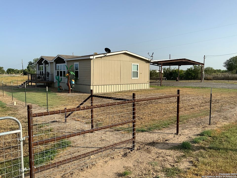 Back on market. Huge price reduction on this great home just an hour south of San Antonio. Like to fish? Great vacation getaway or full time residence just one mile from Choke Canyon boat ramp. 2017 Champion Patriot three bedroom mobile home is in excellent condition. Kitchen has granite counter top on island and large pantry. Living is nice and cozy with the electric fireplace to enjoy the cool winter evenings. Sits on 1.89 acres that always has great grass. There is a 24' X 24' barn that currently is used for horses. Very nice front and back porches and a huge covered carport that could easily be enclosed for garage. Fenced yard for your pets and fenced pasture for horses. 50 AMP RV service. All appliances including washer and dryer stay. Just one hour south of San Antonio and one hour from Corpus Christi. Three Rivers is a great little town full of friendly people and good places to eat.