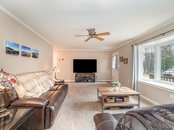 Welcome to this 3 bedroom, 2 full bath home in a quiet, private setting. The living room is spacious and flows into the dining area with a beautiful fireplace, which is open to the well appointed kitchen. There is a large attached, heated garage that hosts the laundry room. Outside there are 2 sheds with electricity, one large one with doors on each end and the middle under roof. The second shed is directly behind the garage. The partial basement houses the 2 furnaces, one propane and the other wood. Outside there are 2 decks to relax on or enjoy the firepit. This home is located in a quiet setting at the end of the road, surrounded by nature, & beautiful trees. Come take a look and decide if this is your new home. Walkthrough Video: https://listings.nextdoorphotos.com/vd/134038126