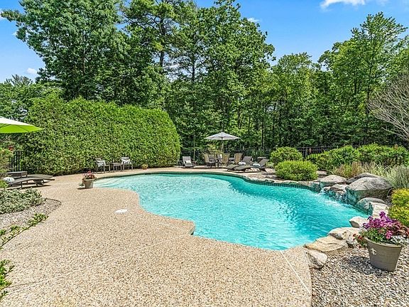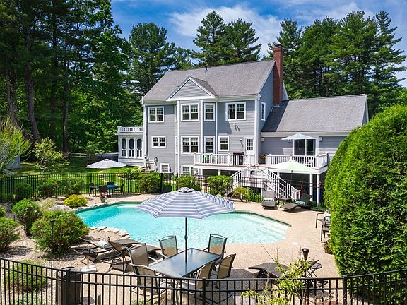 Located on a dead end street and perched atop 2+ acres sits this stunning colonial that will captivate you at first glance. Offering an abundance of space inside and out, this home is perfect for both entertaining & creating memories. Spectacular backyard is an entertainers dream- professionally landscaped grounds, heated gunite pool w/ rock waterfall, patio w/ hot tub & composite deck overlook the large lot. Looking to relax? Sit inside the lovely screen porch & connect w/nature. Inside, the open floor plan has an expansive EIK, DR, oversized family room, LR, & sunken office with hardwood flooring, built-ins, moldings & surround sound throughout. Upstairs, master suite has a large dressing room w/built-ins, sitting area, two double closets & spa-like bath w/Jacuzzi tub, shower & double vanity. 2 more bedrooms, full bath & laundry complete 2nd level. Finished 3rd floor has bath & 2 bedrooms w/double closets & built-ins. Pure perfection. Close to NBPT, 95, boat launch & the ocean.