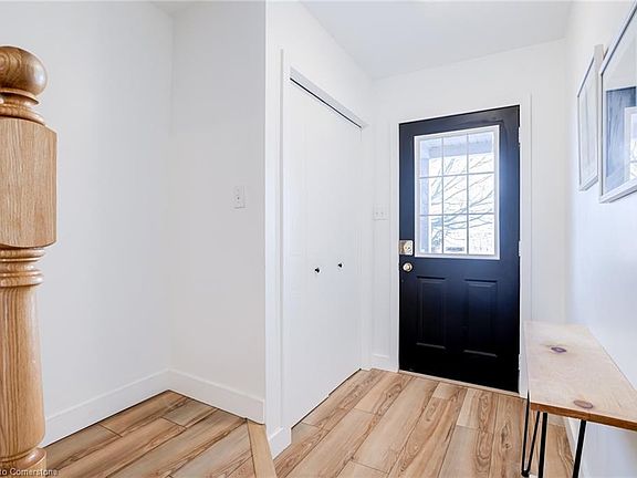 This stylish 3-bedroom, 3-bathroom townhome with a finished basement is perfectly situated in Guelph's south end. From its open-concept layout to its prime location, this home has everything you need for modern, convenient living. The main floor invites you in with beautiful laminate flooring that flows seamlessly throughout the first and second levels. The eat-in kitchen boasts ample storage, an elegant backsplash, and a gas stove/range, perfect for home cooks. Adjacent to the kitchen, the living room is a cozy retreat with built-in shelving and large patio doors that lead to your private terrace. Perfect for BBQing, entertaining guests, or soaking up the sunshine. Upstairs, you'll find a spacious primary bedroom with double closets. A 4-piece bathroom, Two additional well-sized bedrooms and a large linen closet complete the second floor, offering comfort and functionality. The finished basement adds even more versatility to the home, featuring a bright rec room, a 3-piece bathroom, and a convenient laundry area perfect for movie nights, a home office, or a home gym. Location is everything, and this home delivers! Enjoy being in walking distance of restaurants, grocery stores, fitness centers, and more. Plus commuting is a breeze with quick access to the Hanlon Parkway and Highway 401. Don't miss your chance to call this beautiful home your own.