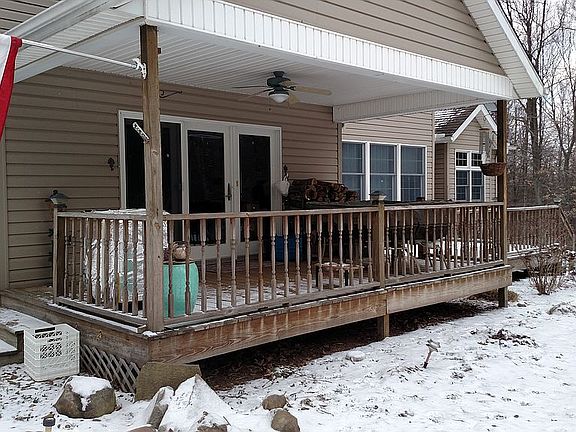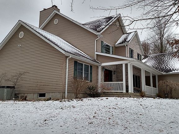This beautiful 4300sq foot of finished living space, two story home sits on just under two acres. Master suite on first floor, with all other bedrooms on second floor. All bedrooms are spacious and have walk-in closets. Second floor bath is split (sink and dressing area split from bath/shower, toilet and sink in adjoining area). All upstairs bedrooms and hall have new carpet in August 2020. Two story great room. Tile in master bath. Large kitchen, dining room, office/mud room, foyer, laundry area, and half bath finish off first floor. Foyer, kitchen, dining room, 1/2 bath and hallway have hard wood floors. All bedrooms, office and great room have ceiling fans. Additional large partially finished basement area (1000 sq ft finished) with family room, rec space, dining area, kitchenette and full bath. Easily partition off a bedroom. Also 700 sq ft unfinished consisting of two work spaces and large storage area. New furnace/heat pump installed November 2018. Mixed open and wooded private lot with two tier deck (one deck covered), patio, front porch, and 12 x 20 shed with storage loft. 24 x 29 heated garage. Plenty of additional off street parking.