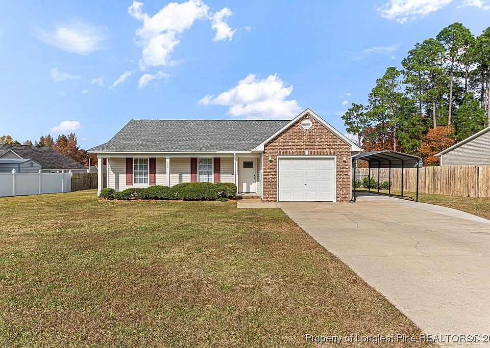 Beautifully updated 3-bedroom, 2-bath ranch in the Stone Ridge Subdivision. Major updates include a new roof in 2023, and a new HVAC system installed in 2024. The septic system was cleaned and serviced in 2024, and the kitchen has been fully remodeled with new cabinets, flooring and granite countertops. Both bathrooms feature updated flooring and vanities. A custom stick-built shed was added in 2025. The back yard is fully fenced, and the home has fresh interior paint throughout most rooms. Enjoy a screened-in back porch with durable LVP flooring, an added concrete pad extending the driveway, and another pad attached to the rear screened porch. Gutters surround the entire home, and with all major updates completed, this property is move-in ready and easy to maintain.