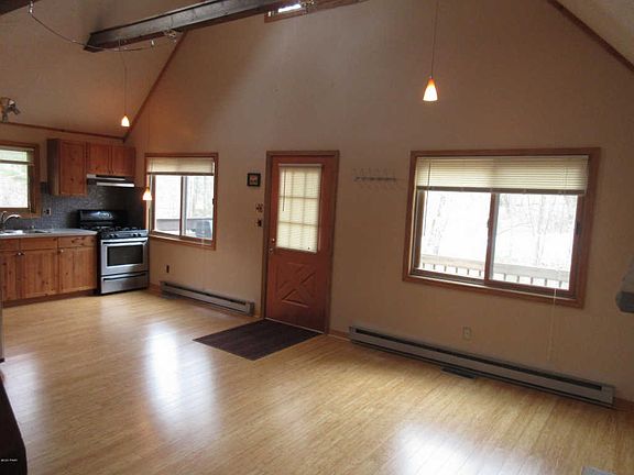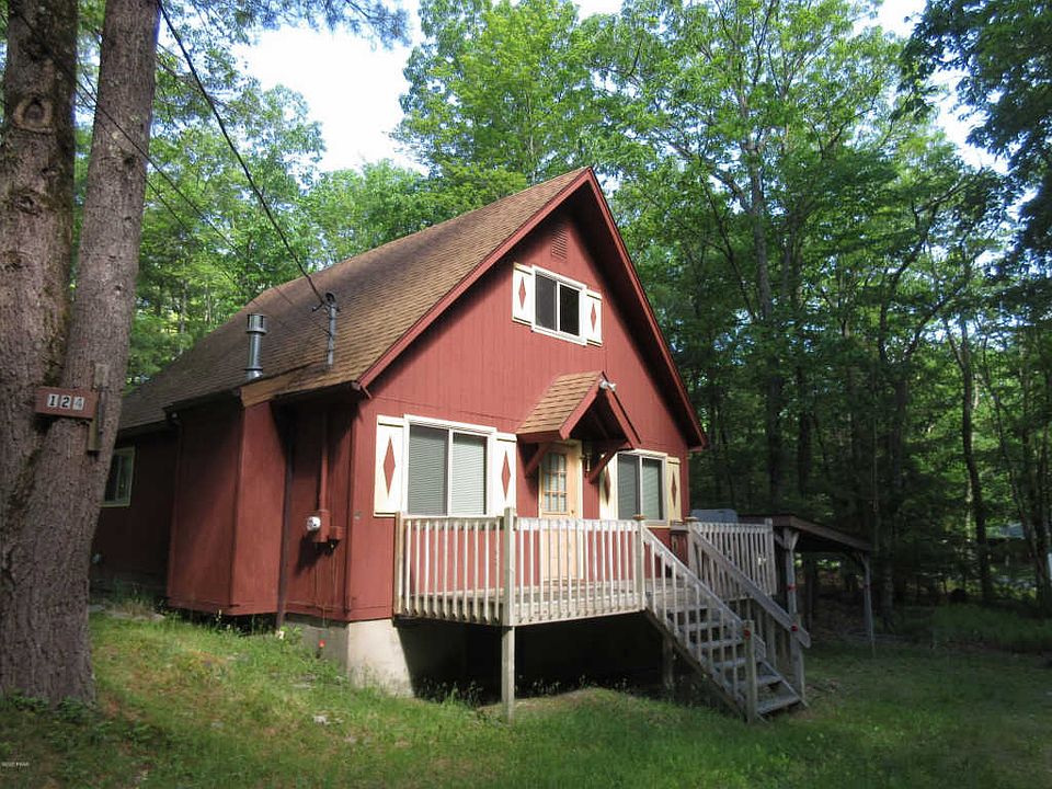 UNIQUE PROPERTY!!! Come and experience this bright and airy Extended Chalet home privately set on a corner acre lot . Fully renovated home features open floor plan, loft, large family room with wood stove and panoramic views of the beautiful natural surroundings, modern kitchen with dining area, living room with propane fireplace, 2 bedrooms, bath, laundry area, hardwood floors, vaulted ceilings with skylight and carport. Just steps from the house is an additional structure which boasts a sauna, large open room on main floor and second story vaulted room. Great for an artist's studio, man cave or kid's dream playhouse. You pick...the possibilities are endless. Enjoy all PA Lakeshores community has to offer: lake access, beach area, clubhouse & tennis courts. This is a must see!