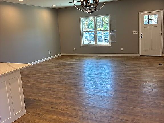 Beautiful new home build on 1.1-acre lot. Spacious 3-bedroom, plus 1 office/flex room and 2 baths. Total under roof: 2,310 sq ft. Total living space: 1,665 sq ft. Featuring lofty 9-foot ceilings with an open concept kitchen, dining, and living room area. Master bath has a double vanity and custom cultured marble shower walls and a custom trackless glass shower door. Both bathrooms have quarts countertops with under mount sinks and custom-built cabinets. Master also has walk-in closet. Kitchen has custom-built cabinets featuring a spice rack, pull out trash can, and sheet pan storage. Beautiful quartz countertops. Extra lighting adds brightness, making it a very inviting space. Includes Whirlpool stainless steel dishwasher and microwave. Nice walkout deck with wooded views. Double hung windows. Lots of recessed lighting. Laundry room. Insulated garage and garage door. Incapsulated craw space. Concrete driveway. City water and natural gas. HVAC has a 10-year parts warranty with a 1-year labor and parts warranty. Bronze gutters will be added soon. This home is in a charming neighborhood and conveniently located just outside city limits.