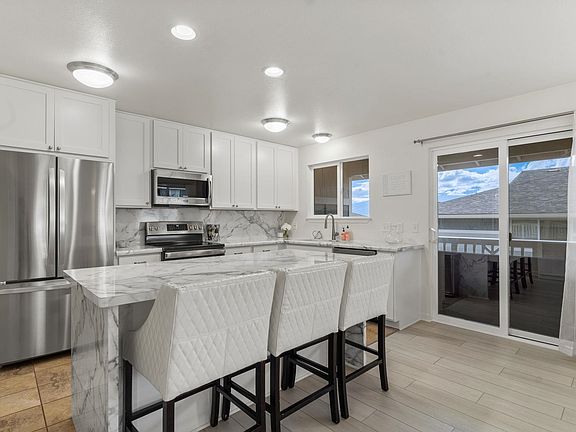Fully fenced yardCustom gateProfessionally maintained sprinkler systemAdditional storage shelvingUpgraded ivory cabinetsNew stainless steel appliancesDesigner lighting fixtures