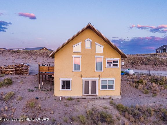 Enjoy wide-open views, stunning sunsets, and peaceful living just minutes from Pinedale in this 4-bedroom, 2-bath home in the Barger Subdivision. Vaulted ceilings, large windows, and a cozy wood stove create a warm, open living space. The kitchen features tile countertops, wood cabinetry, and updated appliances. Recent updates include a remodeled bathroom, an added downstairs bedroom, a stained deck, and a fire pit seating area. The finished basement offers bonus space for storage and a laundry area. Includes a 12' x 18' outbuilding, chicken coop, and community water. HOA covers road maintenance and snow removal.