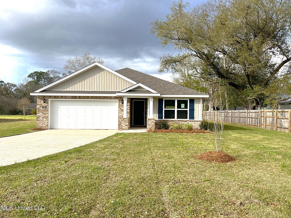 Located Inside Lucedale City Limits. This home features three bedrooms and two bathrooms in over 1,600 square feet of space. From the front door the foyer opens to a hallway to two bedrooms and a full bathroom. As you walk in you will pass the laundry room and the garage access. The living room and kitchen is open. The dining room is open off the kitchen and looks out to the backyard and covered porch. The largest bedroom is to the back of the home. The large en-suite bathroom includes a large walk-in closet. *Photos are of plan but colors will differ