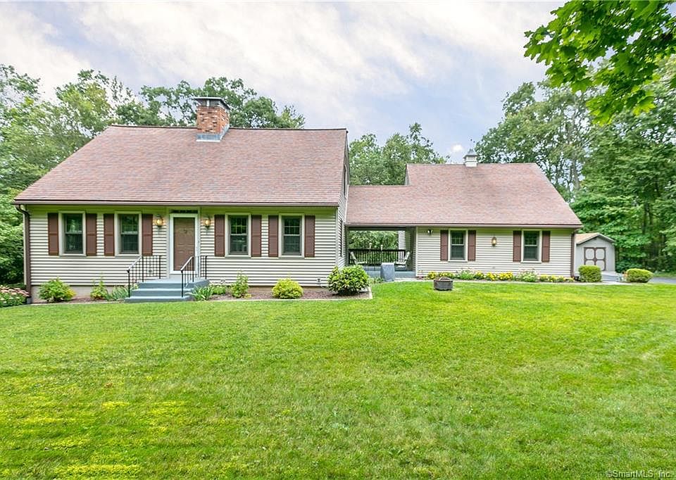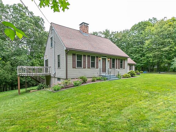 Location, Location, Location! Charming cape on a secluded over 3 acre lot towards the end of a Cul-De-Sac. Take a private trail from the backyard to the park with lake, tennis courts and soccer field. Great place for dog walks or sign up for the town swimming lessons. Original owner shows pride of ownership throughout. Three bedrooms and a full bath upstairs, this dormered cape lives more like a colonial. An additional office down stairs with built in shelves and slider to the deck overlooking the backyard. Hardwood floors throughout. Family room with brick fireplace and pellet stove insert that significantly lowers heating costs. Formal dining room right off the kitchen with built in corner china cabinets. Additional full bath completes the main floor. Lower level is part finished with a walk out lower level. Potential in-law set up with full bath or make it a living/bonus room. Freshly painted throughout. Master bedroom with walk in closet. Need more space? When built, the owner took this into consideration. Potential to expand over the breezeway and garage. Large two car garage and spacious newer shed. Driveway refinished. Beautifully manicured yard and garden beds. This home has so much going for it. You wont want to miss out! Take a look TODAY!