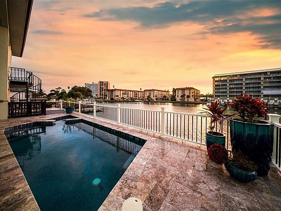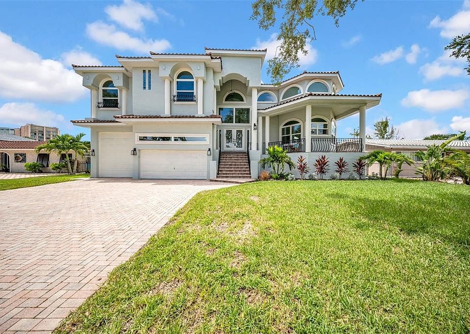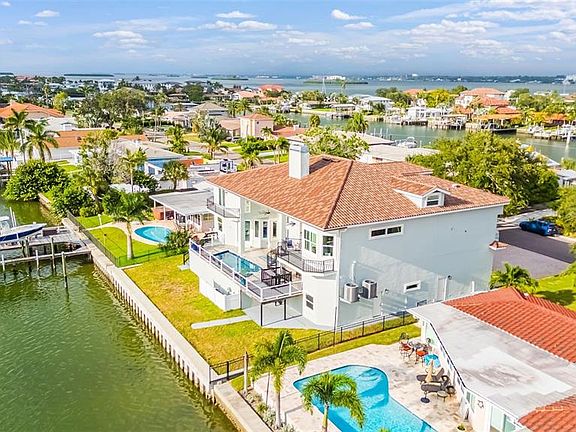 Welcome to your dream waterfront retreat on Island Estates in Clearwater Beach! This fully remodeled 5-bedroom, 4-bathroom coastal masterpiece blends luxury, functionality, and peace of mind—perfect for an elevated waterfront lifestyle. Built well above flood levels, this home features first-level living and a uniquely elevated pool positioned on the same level as your primary living space. Enjoy the convenience of stepping directly out to your pool without descending to ground level, while gaining the confidence of knowing the home had no flooding during recent hurricanes. Inside, an open-concept floor plan showcases modern elegance, anchored by a 1,200+ sq. ft. master suite with panoramic waterfront views—your personal retreat designed for ultimate relaxation. The chef’s kitchen is a culinary showcase, featuring: JennAir appliances, Zebra Cambria quartz countertops, Gas range with pot filler, Custom Innovation soft-close cabinetry, Central vac system for easy maintenance, Brand-new Verea clay tile roof, 3-zone American Standard HVAC system, new impact windows & doors, and Rainbird irrigation system. Step outside to enjoy the sparkling elevated pool and expansive outdoor entertaining space. A brand-new seawall provides security and peace of mind, while giving the buyer the flexibility to design a custom dock system to fit their boating lifestyle. Garage parking for up to 6 vehicles, including RV or trailered boat storage. Located just minutes from Clearwater Beach, Clearwater aquarium, local dining, shopping, and entertainment, this property offers the perfect combination of luxury, location, and lifestyle. This is more than a home—it’s a private resort, designed for those who want comfort, protection, and waterfront living without compromise.