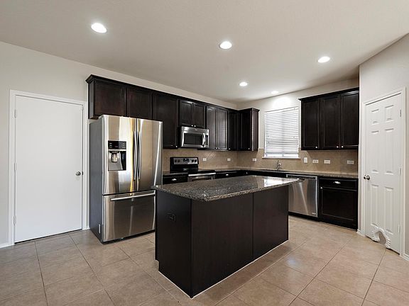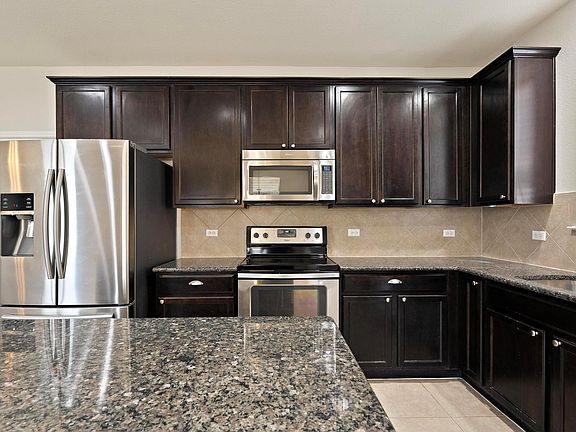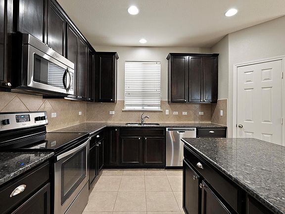 Charming two-story home in Leander’s desirable Summerlyn neighborhood! This 4-bedroom, 2.5-bathroom home features dark wood and tile floors, crown molding, and bright windows that fill the space with natural light. The kitchen offers stainless steel appliances, granite countertops, and a breakfast bar overlooking the open-concept living and dining areas. Functional floor plan includes one bedroom and study downstairs, with three bedrooms and a large game room upstairs. The primary suite boasts a spacious en-suite bathroom with double vanity and a large walk-in closet. Step outside to a huge fenced backyard with plenty of space to play, plus an extended patio perfect for entertaining. Located in a welcoming community with excellent amenities and top-rated Leander ISD schools. Don’t miss this opportunity!