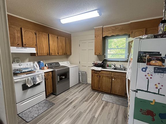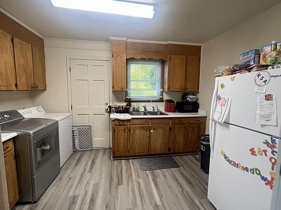 2 bedrooms, 1 bathroom with an open kitchen and living area. Comes with fridge and stove, has hookups for full sized washer and dryer (tenant supplies the machines).
