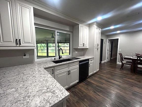 Updated white cabinetsStone countersStone surfacesSeparate dining areaTwo car garagePantry cabinetsWalk-in closet