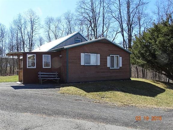 PERFECTLY PRIVATE with beautiful views of the upstate NY countryside- on 9.94 ACRES (surveyed). This 4 Bedroom cape cod style home has a pretty Family room addition with VAULTED CEILING. Newer metal roof, new electrical wiring and newer septic system. COMPLETE KITCHEN REMODEL in 2012. Hardwood floors throughout & wood laminate in kitchen. Allvinyl thermo pane Windows. Property is on a Short spur road(McNulty Lane) so all plowing and maintenance is the responsibility of the owner. 2- Car detached GARAGE.