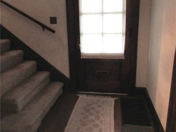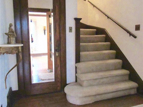 Charming 2.5 story home with attached 1 car garage. Beautiful woodwork thruout. Wood floors in foyer, living and dining. French glass doors w beveled glass between foyer dining and living area. Dining with crown molding , Living room with crown molding and wood burning fireplace that has a tiled front . Large master on the second floor plus finished third floor could be a 4th bedroom / additional living space!Newer electric box. Updated deck off kitchen. Call to see today!!!