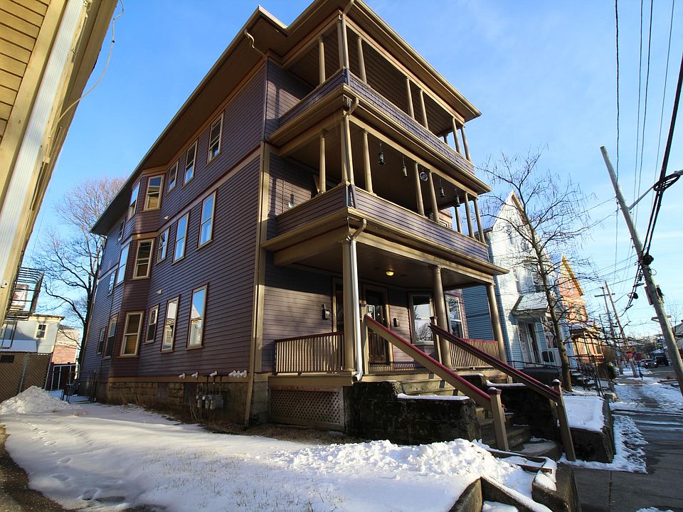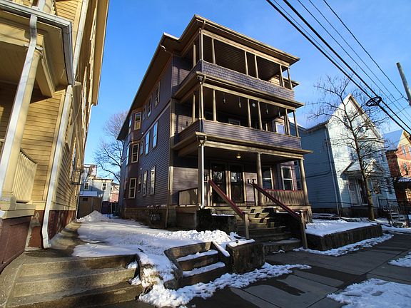 Stunning, light filled apartment available now! Live in the Purple Palace! Beautiful, sun filled three bedroom apartment on the third floor with 9 ft ceilings (no slanted ceilings in this unit) & beautiful sun porch/balcony. This unit has been fully renovated and is ready for tenants! Brand new appliances (gas stove, dishwasher, fridge), newly renovated kitchen & bathroom with all new fixtures & tiled kitchen floor. Refinished hardwood floors throughout, replacement windows throughout. Unit features double parlor plus a dining room plus an eat in kitchen tons of space & beautiful historic details. Laundry hook ups available in the unit (stackable washer/dryer), off street parking available. In person showings available now! Tenant responsible for electric & gas.