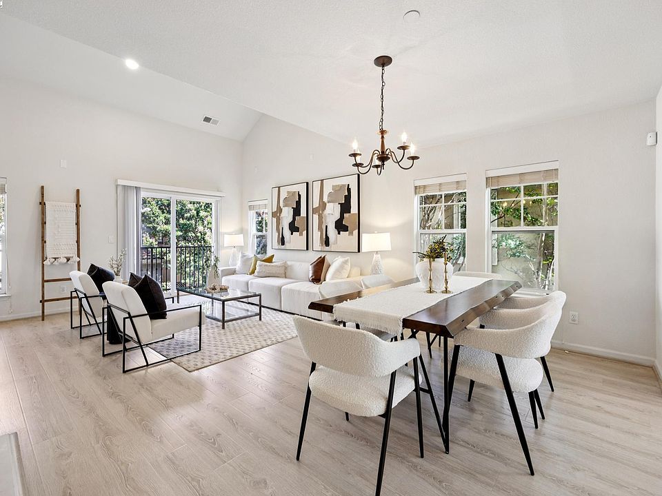 Welcome to 124 Montevina Way in Hayward, a beautifully maintained tri-level attached SFR offering the perfect blend of comfort and style. Featuring 3 bedrooms, 3.5 baths, and 1,854 square feet of living space, this residence is thoughtfully designed for modern living. Each bedroom includes its own en suite bathroom, with one conveniently located on the lower level, complete with a walk-in closet, making it ideal for guests or multi-generational living. The second level boasts a bright and open living area with soaring vaulted ceilings and direct access to a private balcony, perfect for relaxing or entertaining. A convenient half bath is also located on this level. The spacious kitchen is a chef’s delight with a large center island, pantry, gas stove, and generous counter space. The top level offers two additional en suite bedrooms, including the primary suite with a walk-in closet. Enjoy the convenience of an attached 2-car garage with direct interior access, plus ample guest parking throughout the community. Perfectly positioned near the entrance of the complex, Greenwood Park offers a peaceful retreat for play and relaxation. Commuters will love the prime location, just minutes from the San Mateo Bridge and Highway 880, making travel throughout the Bay Area a breeze.